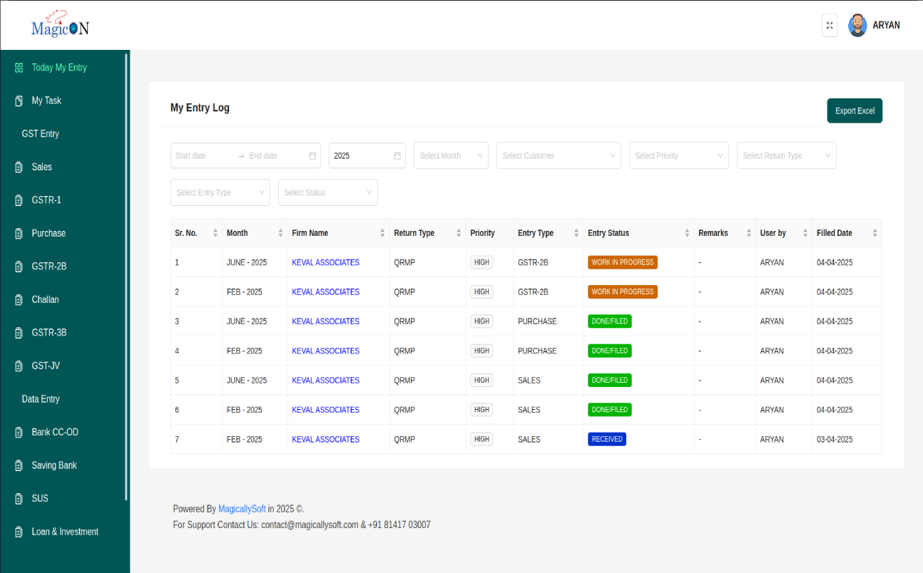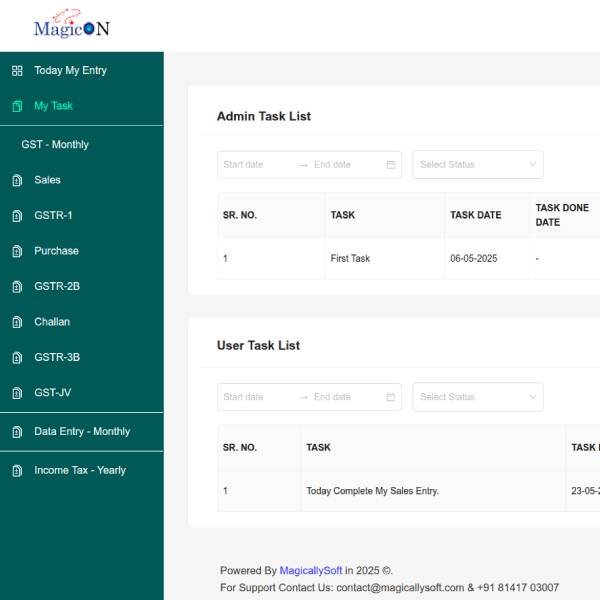 Magicon CRM is a specialized task management system designed for tax consultants to efficiently track and manage GST-related processes. It ensures a smooth workflow from data collection to final GST filing, making compliance effortless.